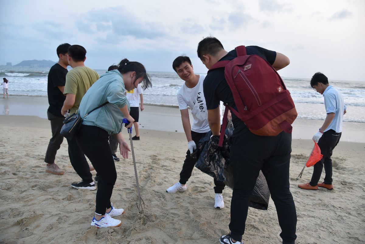 下午18點下班后,公司10余名團員在集團一樓集合,根據(jù)事先充分的安排下到達了目的地,全體團員以高昂的熱情投入到“學(xué)雷鋒志愿服務(wù)”的活動中,環(huán)繞三亞灣海灘對旅游垃圾、白色污染物等進行清理。為了徹底清理干凈,大家提前準(zhǔn)備了垃圾撿拾器、垃圾袋、手套等各種工具,走一路撿一路,不怕臟不怕累,互相配合、相互協(xié)助。在勞動的同時,團員們還積極主動向海灘游玩市民宣傳保護海洋環(huán)境衛(wèi)生的知識,增強他們保護環(huán)境、愛護家園的意識。經(jīng)過大家的齊心協(xié)力,海灘環(huán)境得到明顯改善。
