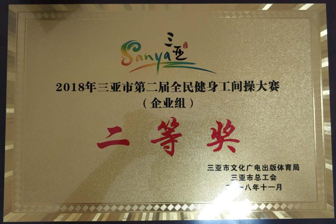 為助力我市“創(chuàng)文鞏衛(wèi)”工作,豐富公司職工的文體活動,提高公司廣大干部職工的身體素質(zhì),2018年11月30日,由我司工會組織的職工工間操代表隊參加了三亞市總工會和三亞市文化廣電出版體育局在三亞市大東海廣場聯(lián)合舉辦的“2018年三亞市第二屆全民健身工間操大賽”。本次比賽活動分為黨政機關(guān)組和企事業(yè)組共19個隊參加比賽。由我司17名職工組成的代表隊最終獲得了企事業(yè)組二等獎。
