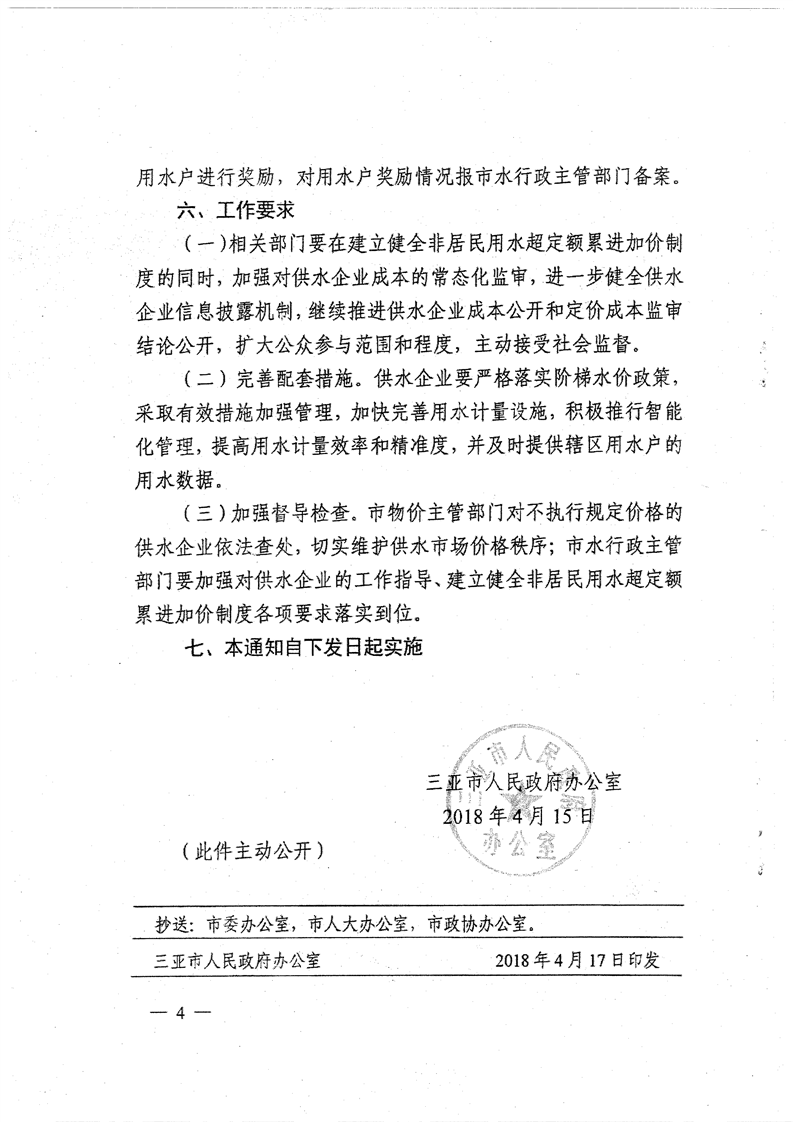 三府辦〔2018〕91號(hào) 關(guān)于印發(fā)三亞市非居民用水實(shí)行超定額累進(jìn)加價(jià)制度到通知