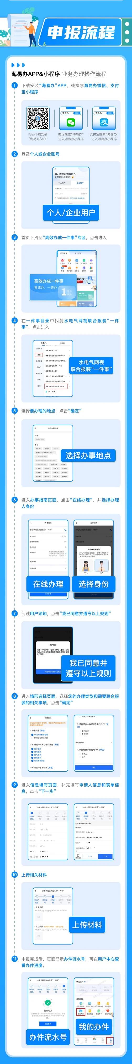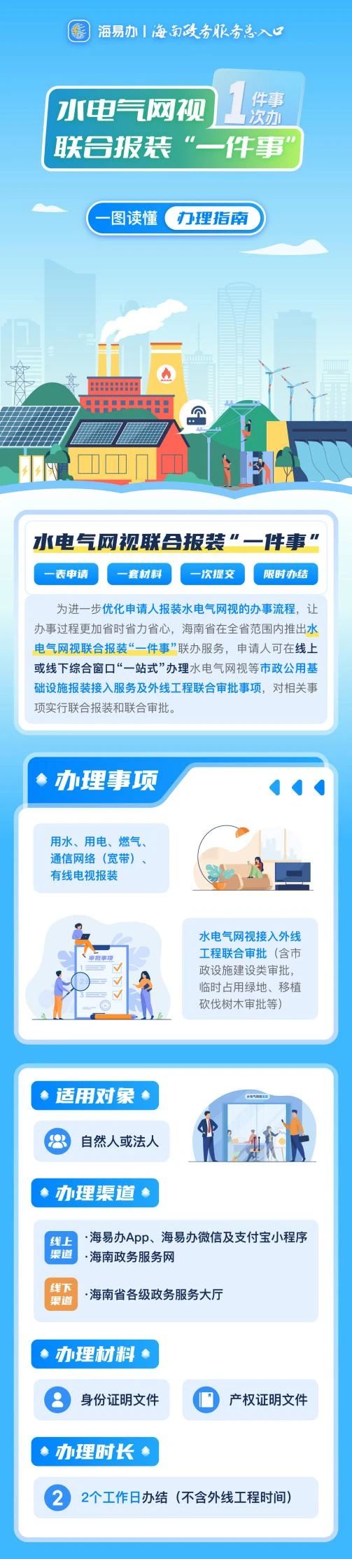 一圖讀懂海南水電氣網(wǎng)視聯(lián)合報(bào)裝“一件事”辦理指南