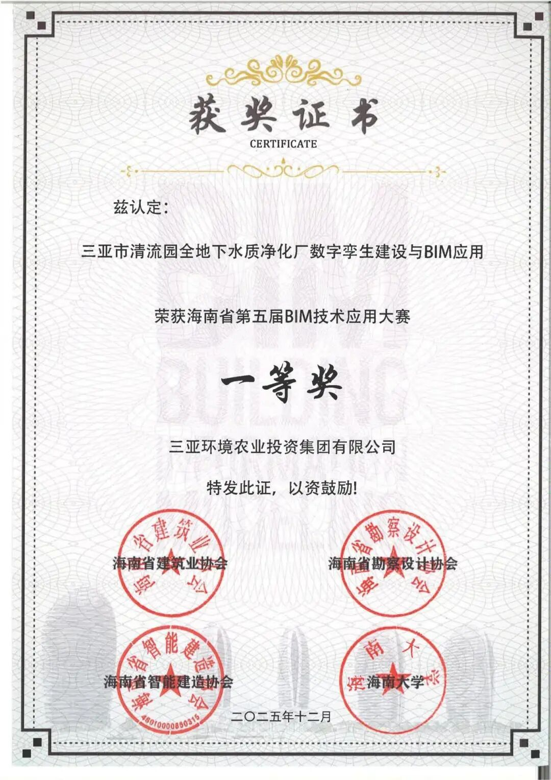 近日,由三亞環(huán)農(nóng)集團(tuán)與旗下三亞環(huán)通工程管理有限公司(簡稱“環(huán)通公司”)共同申報的“三亞市清流園全地下水質(zhì)凈化廠數(shù)字孿生建設(shè)與BIM應(yīng)用”項目,在海南省第五屆BIM技術(shù)應(yīng)用大賽中榮獲一等獎。這一榮譽(yù)不僅是對項目技術(shù)實(shí)力的充分肯定,也標(biāo)志著集團(tuán)在智慧水務(wù)與數(shù)字化建造領(lǐng)域取得了重要進(jìn)展。